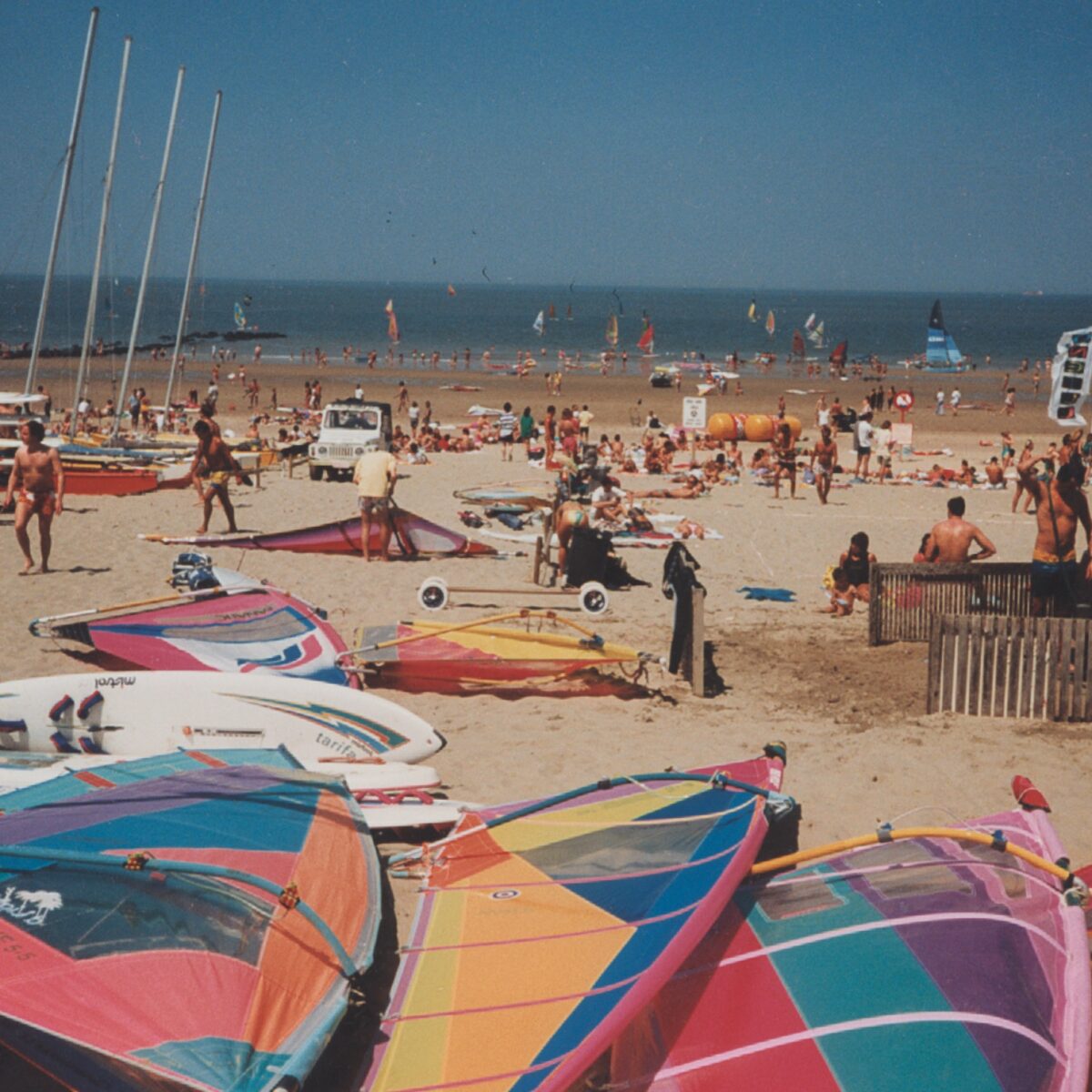 Windsurfen groeide van rariteit naar rage. In het begin bleef het beperkt tot het meer. Maar al snel ontstond er een community: lesgevers, leerlingen, fans, winkels. Wishbone Surfshop in Duinbergen werd een heiligdom. Er werd verkocht, getest en gepraat in termen als ‘mastvoet’, ‘giek’ en ‘trapeze’, woorden die tot dan toe niemand aan onze kust had uitgesproken. Wie erbij was, weet het: dit was meer dan een sport. Het was vrijheid. Water. Wind. Avontuur. En een nieuw soort strandleven dat de stijfheid van de klassieke badplaats even door elkaar schudde.