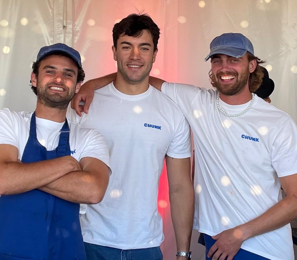 “We zijn Bryan, Victor en Nicolas, drie beste vrienden. We voelden ons geroepen om iets te doen voor de jeugd in Knokke-Heist. Vanuit onze verschillende professionele achtergronden vormen we een team dat werkt als een Zwitsers zakmes. Bryan staat in voor al de technische obstakels: zo bouwde hij het oorspronkelijke concept van Chunk op van achter zijn computer, en wist hij de rest van het team te inspireren om knopen door te hakken. Victor staat dan weer in voor het verbinden van het team in deze toch wel hevige en dynamische markt. Zijn huis werd deze zomer even het Chunk-hoofdkwartier. Het was ook Victor die onze Chunk-saus bedacht waardoor we ons kunnen onderscheiden met iconische burgers. Nicolas is onze head of operations: zijn horeca-ervaring helpt Chunk om op elk event zo efficiënt mogelijk te werken zodat we kwaliteit kunnen verzekeren aan onze partners en klanten. Hij slaagde erin om van elke burger een kunstwerkje te maken, of het nu om drie uur ’s middags of om vijf uur in de ochtend was. Verder springen ook vrienden bij om ons te ondersteunen wanneer het nodig is. Zonder deze mensen zou het niet mogelijk zijn om de kwaliteit te leveren die we zo belangrijk vinden.”