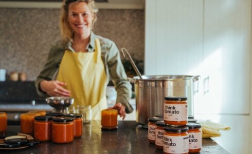 WIE IS DE VROUW ACHTER THINK TOMATO? "Ik ben Julie D’Heygere, mama van 2 en vrouw van 1. Daarnaast ben ik een bezige bij die maar zelden stilzit. Mijn grote passie is koken en ik probeer zoveel mogelijk van mijn – extraverte persoonlijkheid en levensfilosofie