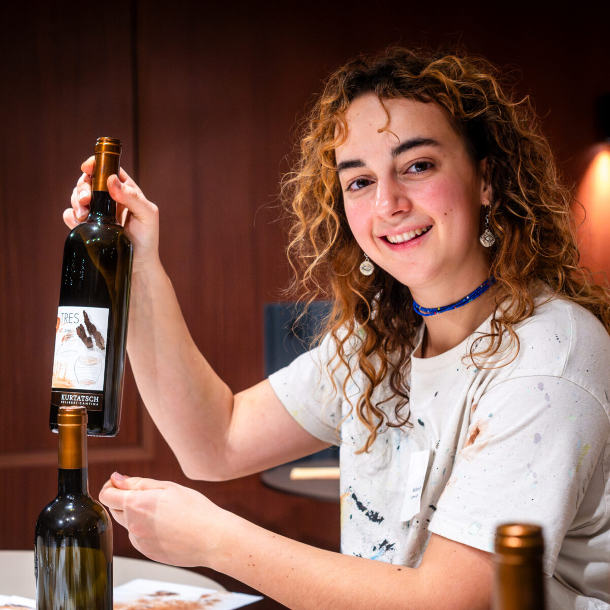 Via een workshop “Design your label” met kunstenares Carmen Alber ontdekten we hoe een wijnlabel meer is dan een vorm. Zij begeleidde ons in lijnen, kleuren en typografie, terwijl een sommelier van Kellerei Kurtatsch het verhaal van de cuvée TRES toelichtte. Het was bijzonder hoe kunst en ambacht elkaar daar ontmoetten.