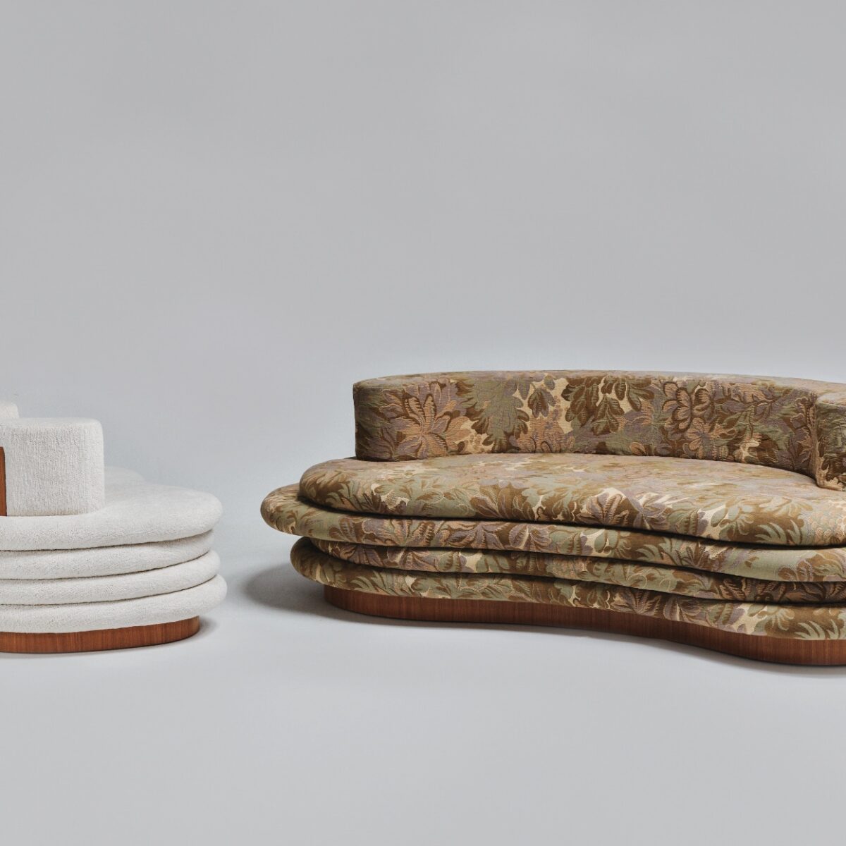 “Ik ben in zee gegaan met ‘Designs of the Time’, het bedrijf van de familie Puylaert in Sint-Niklaas, dat gespecialiseerd is in interieurstoffen. Dat was een supertoffe samenwerking. En ik heb er nog twee designers bij betrokken: Jeroen De Ruddere stelde zijn lampen voor en Bemelmans Design drie stoelen.