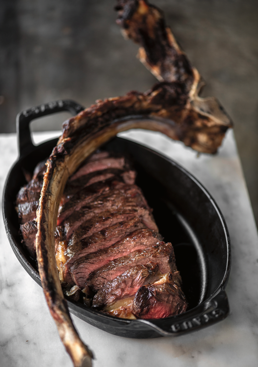 Een tomahawk is het nieuwe ‘it’-stuk dat je deze zomer op je grill wil bereiden. Het is een imposant stuk vlees door het grote bot dat uitsteekt en dat doet denken aan een Indiaanse strijdbijl, vandaar de naam. Eigenlijk moet je dit stuk zien als een mega ribeye maar dan eentje met een handvat. Laat je niet afschrikken door dit stuk vlees: met wat geduld en een kernthermometer tover je een topstuk op tafel. Voorgaren in de oven is ook altijd aan te raden als je grotere stukken vlees wil bereiden op de BBQ.