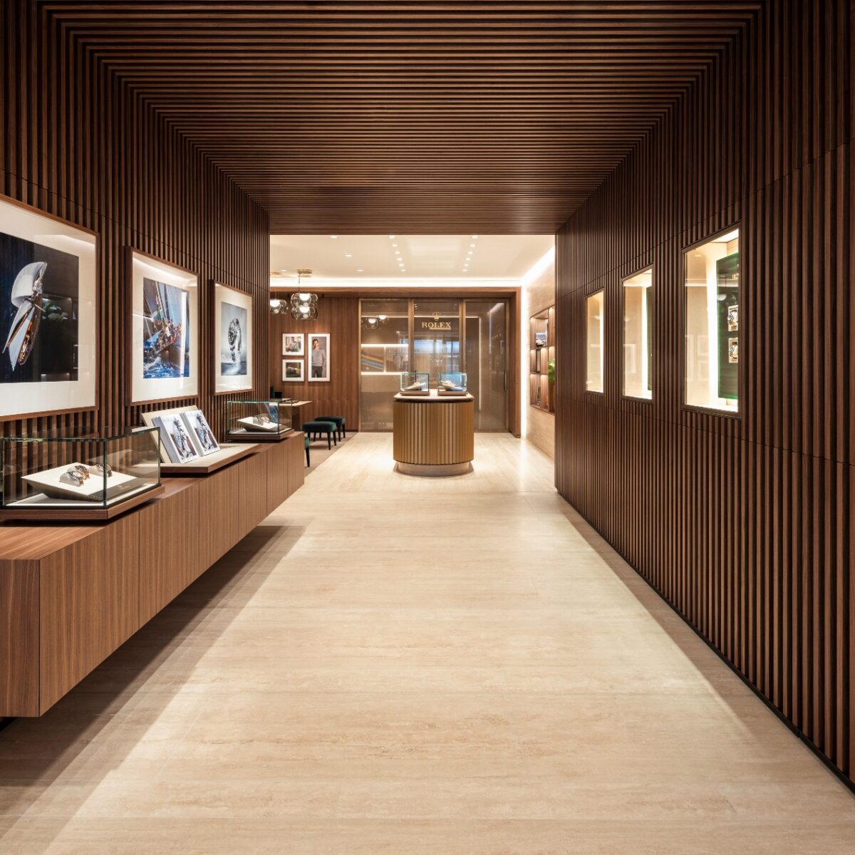 Bijna 10 jaar nadat Woertys zich installeerde als de officiële Rolex-retailer in Knokke Le Zoute opende zopas de vernieuwde Rolex Boutique, ontworpen en ingericht in nauwe samenwerking met de architecten van Rolex. De nieuwe winkel is een plek van uitwisseling en ontdekking rond een assortiment van nieuwe Rolex-horloges. De vitrines en displays bieden een evenwichtige setting voor de horloges tegen een achtergrond van driedimensionale handgemaakte decoraties, door het merk ontworpen en vervaardigd met behulp van de ledertechniek. Om de ervaring nog aangenamer te maken, zijn er speciale ruimtes gereserveerd voor een gesprek. Kortom, alles werd in het werk gesteld om de horloges van dichtbij te bekijken, in een relaxte sfeer.