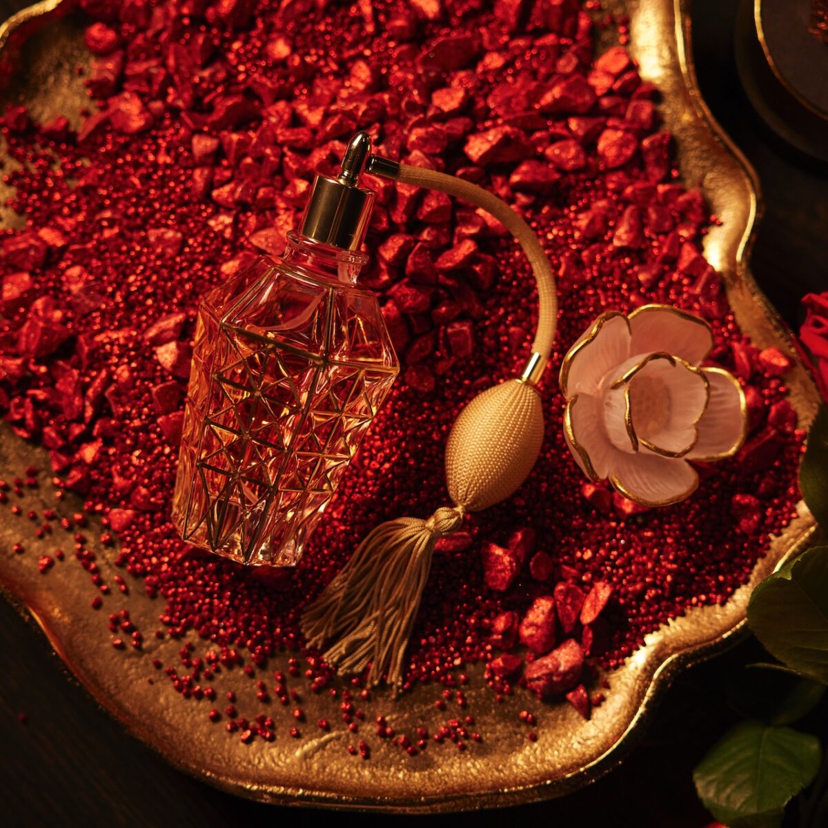 “Ik hou van mode en kwaliteit”, vertelt Nathalie. “Luxe is voor mij een mooi design, maar even goed het gevoel van een zachte kasjmieren trui op mijn huid. Ik hou ook van schoonheid: me omringen met mooie dingen, die me blij maken en die met zorg zijn gekozen en een verhaal vertellen. Zo moest ‘La F’ voor mij het ultieme parfum worden dat ik zelf zou willen dragen, in een flacon die ik zelf het liefst van al in mijn badkamer zou hebben staan en die mij, maar ook anderen laat wegdromen. Een luxeproduct zowel vanbinnen als vanbuiten. De prestigieuze, kostbare geur van ‘La F’ vroeg in mijn ogen dan ook om een sierlijke, luxueuze flacon. Omdat ‘La F’ een parfum met bloemen en amber is, wilde ik een bloemenflacon die vrouwelijkheid uitstraalt. Het handgeblazen flesje is elegant versierd met een gouden lijnenspel en gekroond met een verfijnde bloemendop; de bijgeleverde authentieke pompverstuiver vormt een knipoog naar de chique boudoirparfums van vroeger. Samen met Eva Bos, die ook mijn bloemenboeketten maakt, heb ik een fles uitgedacht en op maat laten maken in glas. De fles is meermaals aangepast want elk detail moest kloppen! Zo’n pompverstuiver vind ik trouwens zalig. Ik hou van het ritueel van mij klaar te maken als we uitgaan. De stijlvolle manier waarop ze dit vroeger deden, zoals je kan zien in series als Downtown Abbey en Bridgerton bijvoorbeeld, trekt mij enorm aan. Daarbij is Parijs mijn happy place en de Parijse stijl mijn grootste bron van inspiratie.”