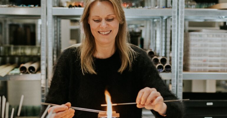 WIE IS DE VROUW ACHTER DE KUNSTENARES? “Ik ben Klaar Prims, afkomstig uit Westerlo. Ik sta bekend om verfijnde, mondgeblazen glasobjecten die ambacht combineren met hedendaags design. Mijn werk kenmerkt zich door pure eenvoud en harmonie, waarbij ik zand en hitte omzet in een 'koude